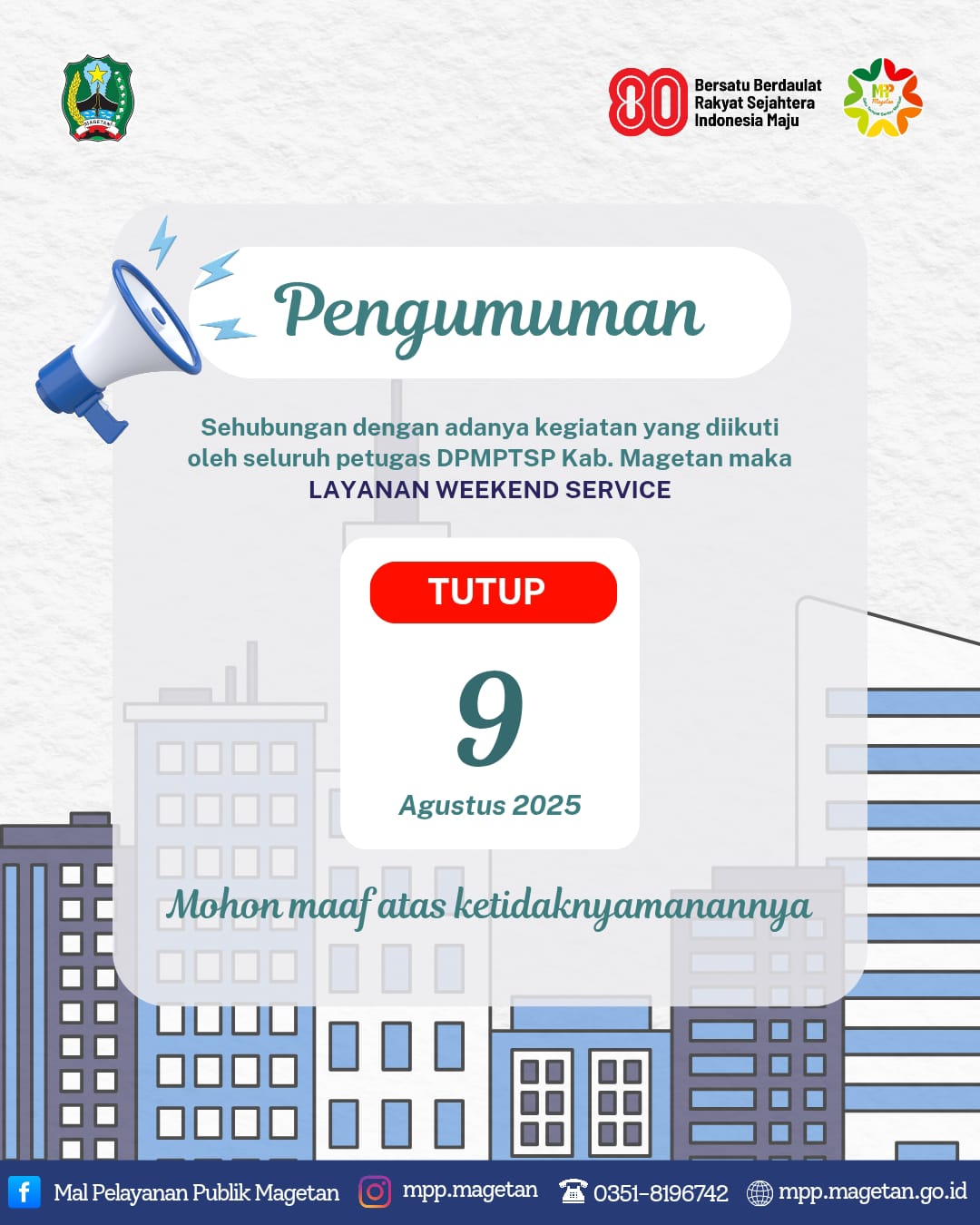 PENGUMUMAN Layanan Weekend Service TUTUP pada 9 Agustus 2025, Mohon maaf atas ketidaknyamannya.